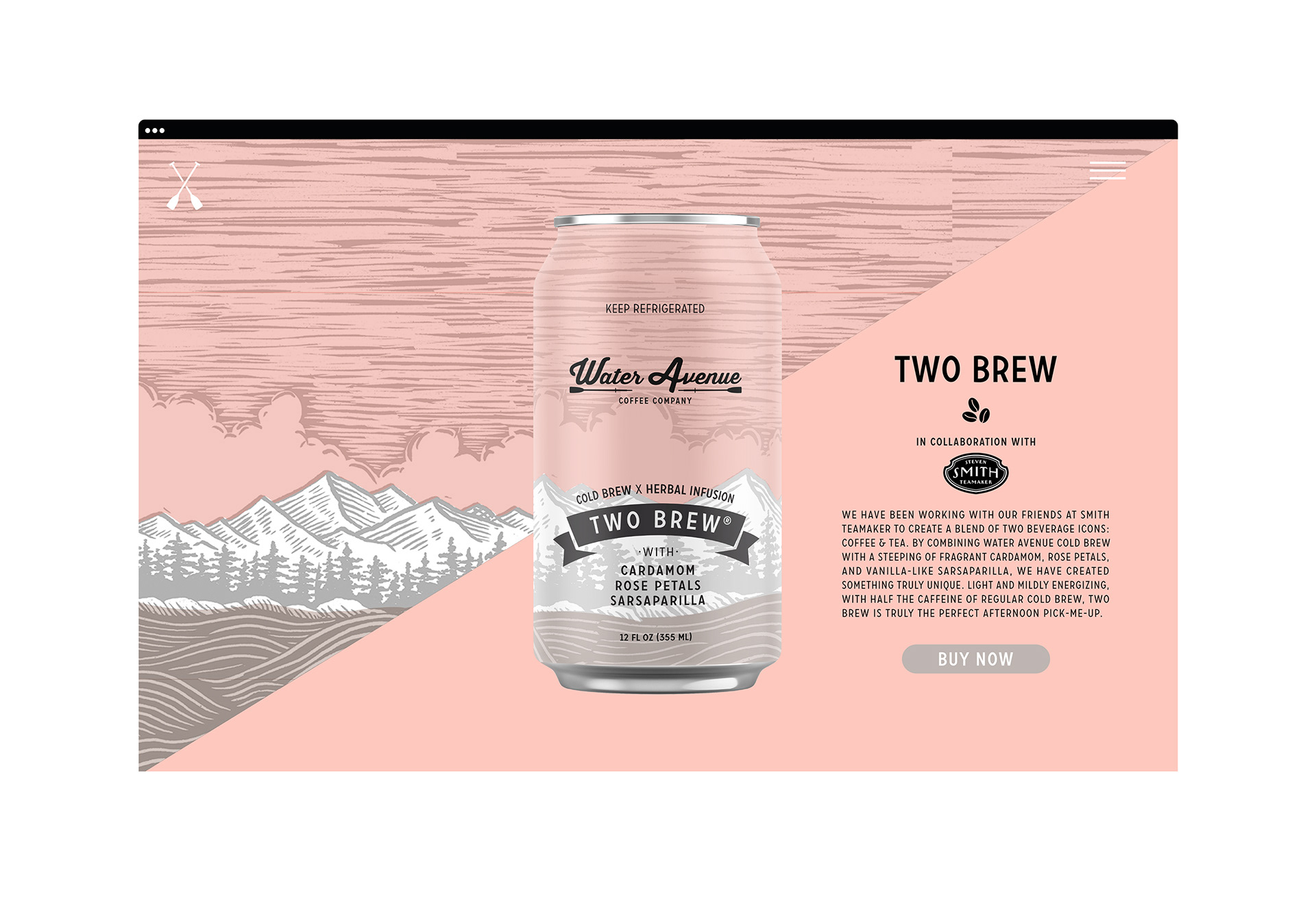 I worked with Water Avenue Coffee Company on designing their ready-to-drink canned beverage line. It included their Cascara Soda, Cold Brew, and Two Brew™. Each can design and color palette was inspired by the ingredients in mind while staying true to Water Avenue’s love of the outdoors and “old school” aesthetics.